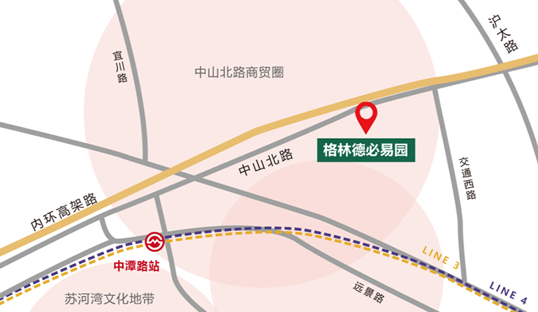 驱车:300米内环高架入口、1400米南北高架入口 地铁:3、4号线中潭路站步行8分钟,1号线中山北路站步行15分钟